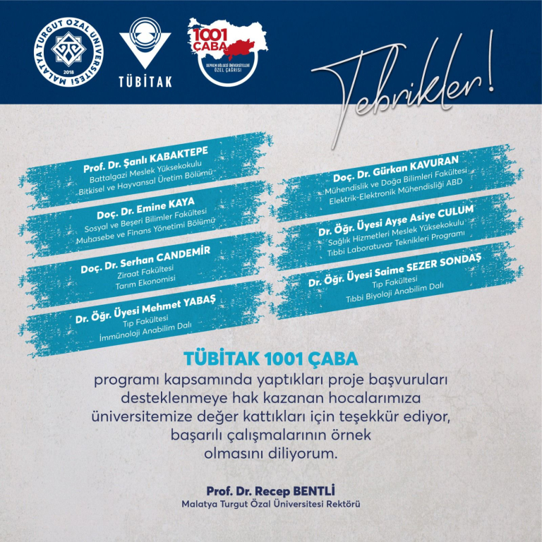 Bölümümüz Öğretim Elemanından TÜBİTAK 1001 ÇABA ...